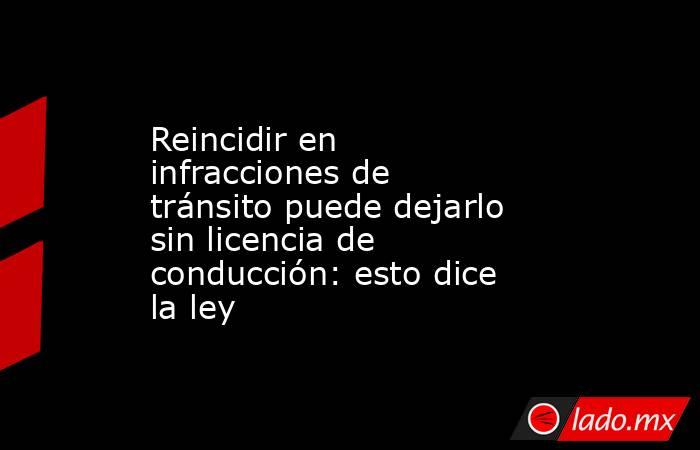El artículo 124 de la Ley 769 de 2002 establece que la reincidencia en infracciones de tránsito genera la suspensión de la licencia por seis meses.