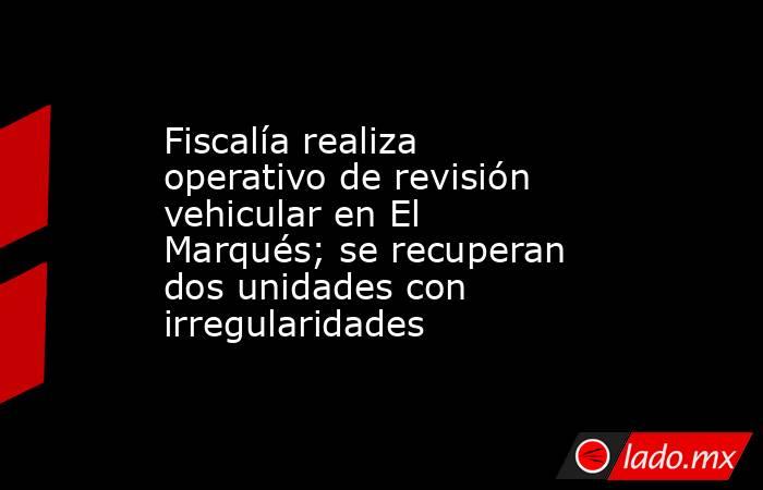 The post Fiscalía realiza operativo de revisión vehicular en El Marqués; se recuperan dos unidades con irregularidades first appeared on Noticias de Querétaro - Querétaro 24-7.