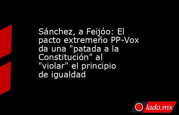 El presidente del Gobierno, Pedro Sánchez, ha cargado este miércoles contra el PP por su pacto con Vox en Extremadura, ya que, según ha dicho, "viola" el "principio de igualdad" entre ciudadanos y el "principio de no discriminación". Además, ha recriminado a los "populares" que apuesten por un "frenazo" a las energías renovables y el "desmantelamiento de lo público".
