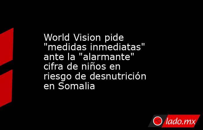 La organización no gubernamental World Vision ha reclamado este miércoles "medidas inmediatas" por parte de ONG y donantes para "proteger vidas" en Somalia ante la "alarmante" cifra de niños en riesgo de desnutrición aguda, que es estima que podría ser de entre 1,84 millones entre los que tienen entre seis y 59 meses de edad, incluidos 483.000 en riesgo de muerte.