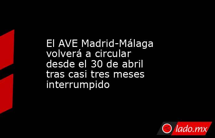 La línea de alta velocidad entre Madrid y Málaga retomará el servicio el próximo 30 de abril a las 12.00 horas tras casi tres meses de interrupción, según han confirmado a Europa Press en fuentes de Adif.