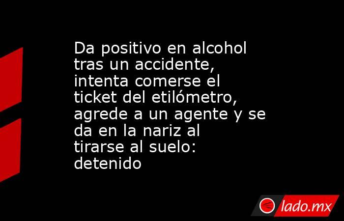 La Policía Local sometió a esta persona a la prueba de alcoholemia, que marcó 0,86 mg/l, una cifra que supera el límite legal permitido. Al conocer el resultado, el conductor intentó romper el ticket impreso por el etilómetro, se lo introdujo en la boca y procedió a tirarse al suelo, sufriendo como resultado un golpe en la nariz.