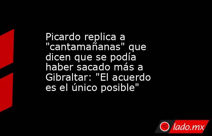 El ministro principal de Gibraltar, Fabian Picardo, ha defendido que el acuerdo alcanzado entre Reino Unido y la UE sobre el Peñón era el "único posible" porque la alternativa era mantener la Verja frente a los "cantamañanas" que, según él, insisten en decir que España podía haber conseguido algo más en la negociación, al tiempo que ha descartado de plano que en el futuro pueda llevar hacia la soberanía compartida.