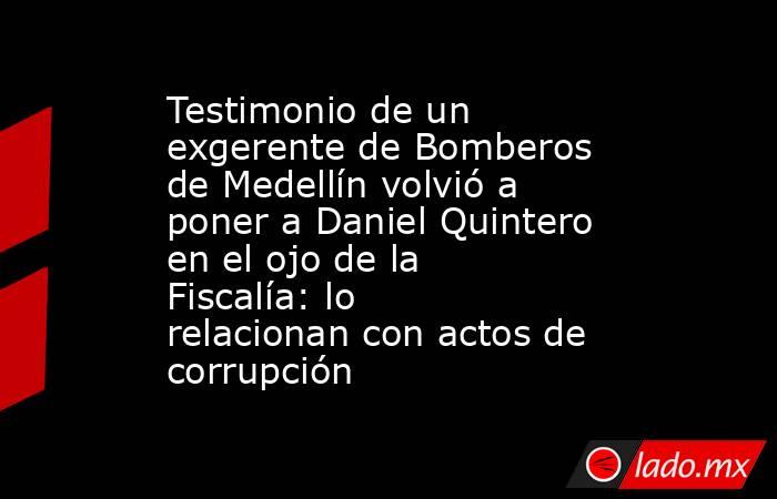 El testimonio reciente del exgerente de los Bomberos de Itagüí Misael Cadavid ha implicado directamente al exalcalde de Medellín Daniel Quintero en un caso de presunta corrupción que involucra contratos públicos por cerca de 18.000 millones de pesos en el Valle de Aburrá.
