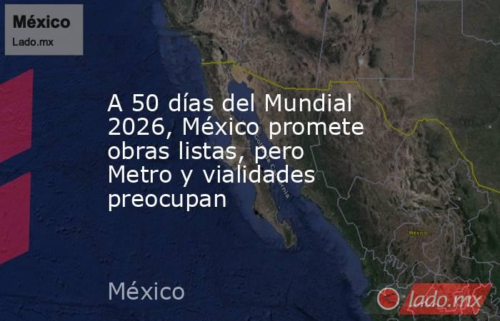 A menos de 50 días de la inauguración del Mundial 2026, México enfrenta una carrera contrarreloj para terminar obras clave en sus tres sedes: Ciudad de México, Jalisco y Nuevo León. El país busca proyectarse como un destino moderno, conectado y listo para recibir a millones de aficionados, pero la realidad muestra contrastes.