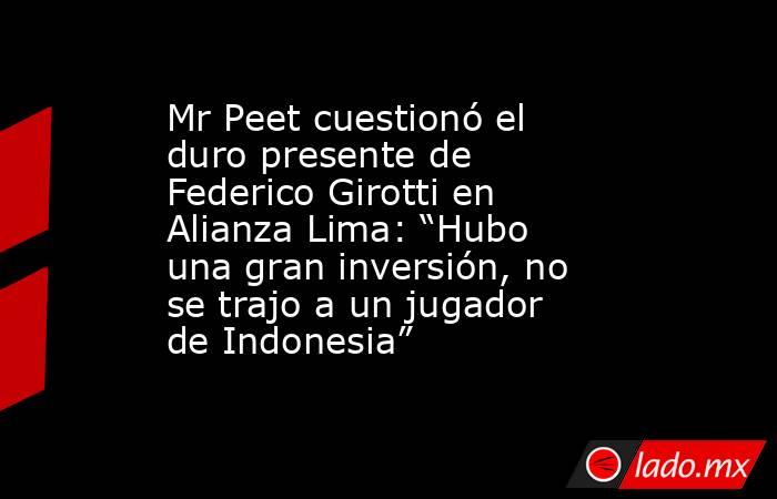 “Hay una inversión importante que ha hecho la institución para un jugador que suma poco y nada de minutos. Esto es pregunta, ¿no se está desperdiciando un jugador que viene de la liga argentina? ¿No tiene condiciones Girotti para jugar en Alianza?”, planteó Mr Peet en tono crítico, abriendo el debate entre la política de fichajes del club y las decisiones técnicas.
