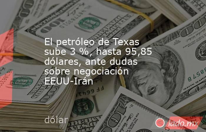 Nueva York, 23 abr (EFE).- El petróleo intermedio de Texas (WTI, por sus siglas en inglés) cerró este jueves con una subida del 3 % y se situó en 95,85 dólares el barril al prevalecer las dudas sobre las negociaciones de paz entre Estados Unidos e Irán.