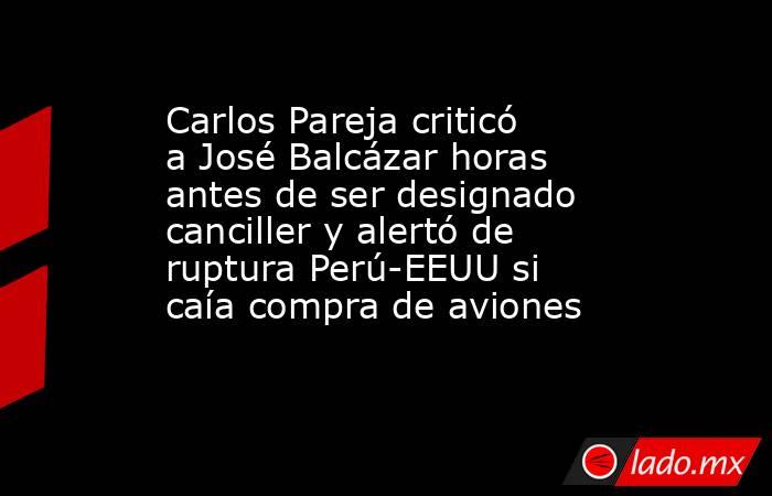 El nuevo ministro de Relaciones Exteriores, Carlos Pareja, cuestionó al presidente interino José María Balcázar horas antes de asumir el cargo y consideró que, si se caía la compra de aviones F-16, la relación entre Perú y Estados Unidos podría haber entrado en una situación “delicada”.