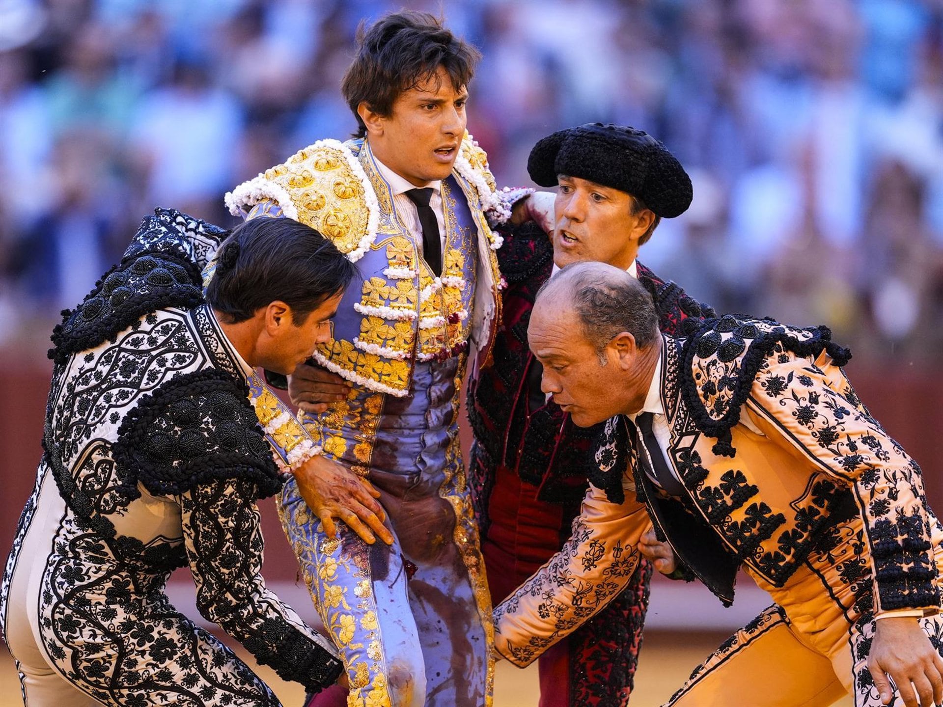 Con gestos de dolor y llevándose las manos a la pierna para taponar la hemorragia, el diestro era llevado en brazos por su cuadrilla a la enfermería de la plaza, donde era intervenido de urgencia por el doctor Octavio Mulet -que hace tan solo dos días intervenía a Morante de la Puebla tras su grave cornada- y, ya estabilizado, abandonaba el lugar en ambulancia para ser trasladado a un hospital sevillano donde continuar su recuperación con pronóstico "muy grave".