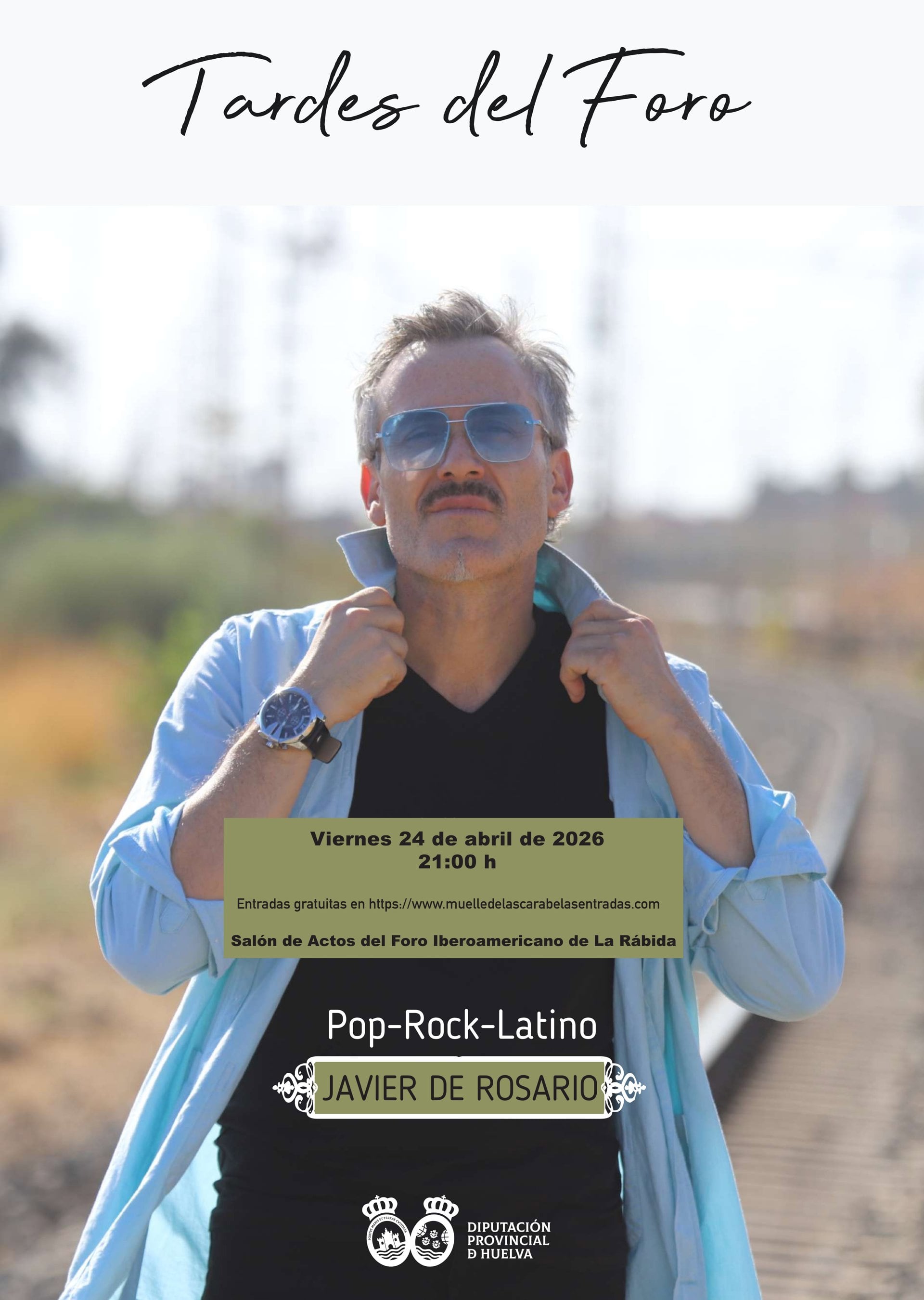 Las Tardes del Foro, el ciclo de actuaciones musicales de la Diputación de Huelva, regresan este viernes con el pop rock latino de Javier de Rosario. La cita, a las 21,00 horas, en el Salón de Actos del Foro Iberoamericano, con entrada gratuita hasta llenar aforo Y bajo reserva en el siguiente enlace https://www.muelledelascarabelasentradas.com .