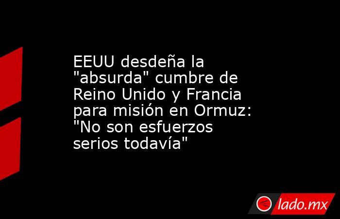 El secretario de Defensa de Estados Unidos, Pete Hegseth, ha desdeñado este viernes los esfuerzos encabezados por Reino Unido y Francia para poner en marcha una misión naval internacional que escolte buques mercantes en el paso de Ormuz una vez se ponga fin a la guerra, asegurando que celebraron una "absurda" cumbre en la que todavía no se vieron "esfuerzos serios" para lanzar la operación.