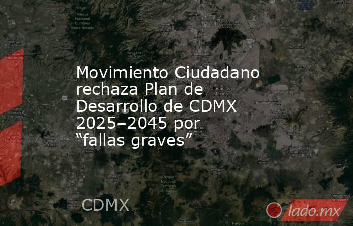 El partido Movimiento Ciudadano en la Ciudad de México manifestó su rechazo al Proyecto de Plan General de Desarrollo 2025–2045, al considerar que presenta “fallas graves” tanto en su contenido como en el proceso mediante el cual fue elaborado.