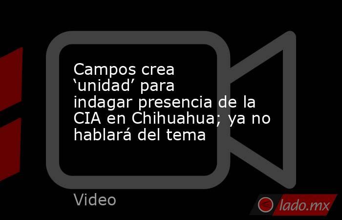 La gobernadora de Chihuahua, María Eugenia Campos, anunció la creación inmediata de una Unidad Especializada para investigar la presencia de elementos de la Agencia Central de Inteligencia (CIA, por sus siglas en inglés) en el operativo que culminó con el desmantelamiento de un gran laboratorio de drogas sintéticas en El Pinal, municipio de Morelos. Después del despliegue oficial se registró un accidente que cobró la vida de cuatro personas, incluyendo dos agentes extranjeros.