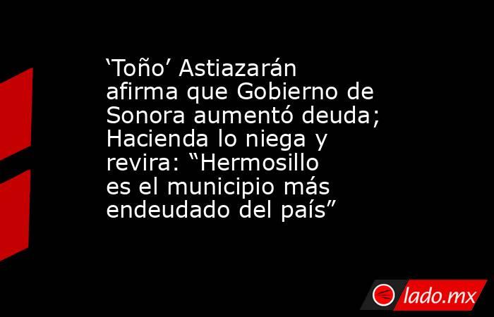 The post ‘Toño’ Astiazarán afirma que Gobierno de Sonora aumentó deuda; Hacienda lo niega y revira: “Hermosillo es el municipio más endeudado del país” appeared first on Proyecto Puente.