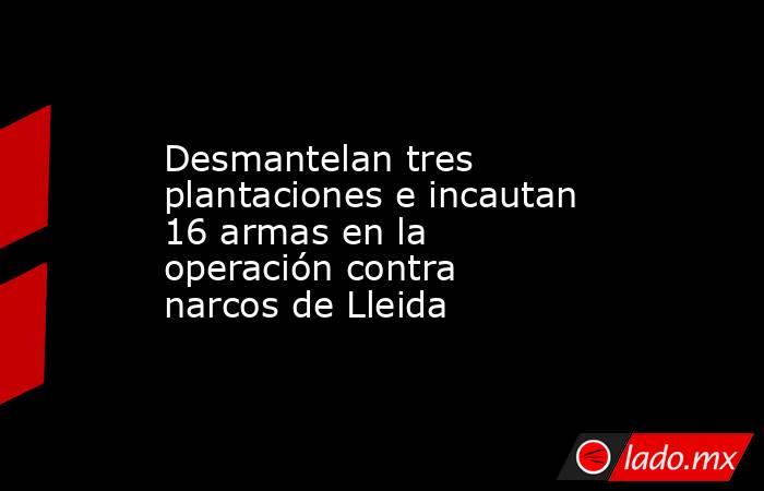 Barcelona, 25 abr (EFE).- Los Mossos d'Esquadra han desmantelado tres plantaciones de marihuana en interior, con 1.300 matas, y han intervenido 16 armas de fuego a raíz de la operación del pasado martes en Lleida contra un grupo criminal dedicado al narcotráfico, que se saldó con doce detenidos.