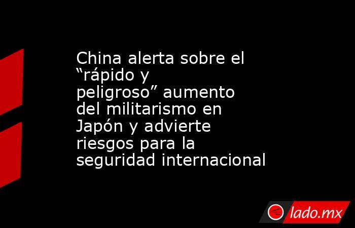 El Ministerio de Exteriores de China advirtió este viernes sobre el “rápido y peligroso” incremento del militarismo en Japón, una tendencia que, a juicio de Pekín, ya representa una amenaza tangible para la seguridad internacional.