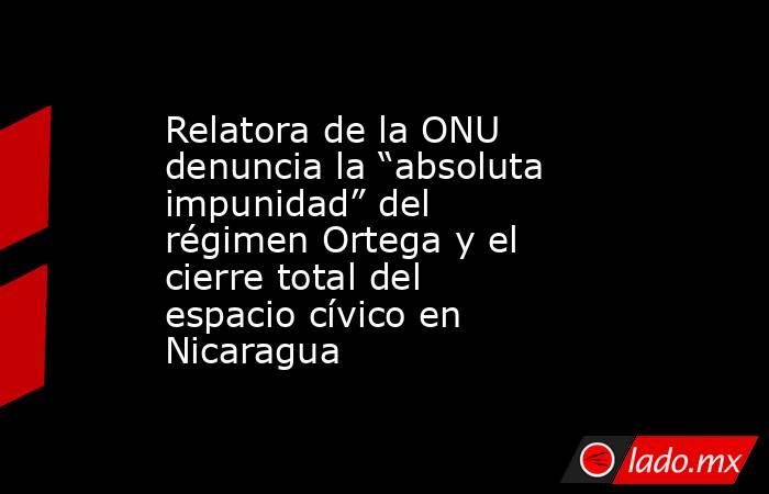 El cierre del espacio cívico ha sido sistemático. Entre 2018 y 2024, según la Comisión Interamericana de Derechos Humanos (CIDH), más de 5.400 organizaciones civiles fueron canceladas, entre ellas organizaciones de mujeres, iglesias católicas y evangélicas, y entidades de asistencia social. Romero advirtió que la anulación de libertades también afecta a universidades, iglesias y grupos comunitarios, lo que limita los derechos fundamentales de asociación, culto y expresión. “Cada vez que se impide o se hace un proceso de afectación grave a un culto, eso también afecta porque los cultos son reuniones que entran dentro de la protección del derecho a la libertad de asamblea”, subrayó la relatora.