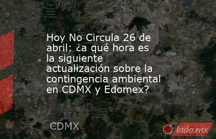 La Comisión Ambiental de la Megalópolis mantiene activa la Fase 1 de contingencia ambiental por ozono en la Ciudad de México y la Zona Metropolitana del Valle de México tras registrar concentraciones máximas de ozono durante la tarde del sábado, por lo que se aplican restricciones extraordinarias al programa Hoy No Circula este domingo 26 de abril.