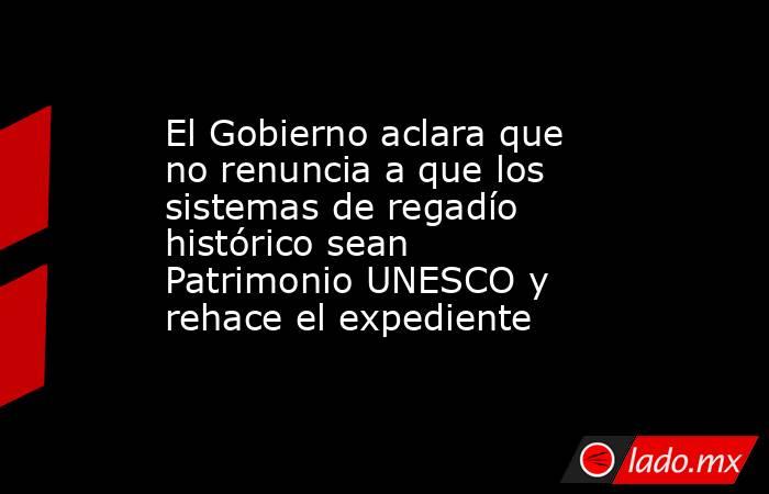 El Ejecutivo trabaja para rehacer el expediente para que los sistemas históricos de regadío sean reconocidos como Patrimonio Cultural Inmaterial por la Organización de las Naciones Unidas para la Educación, la Ciencia y la Cultura (UNESCO). "El Gobierno, a través del Ministerio de Cultura, no ha renunciado al reconocimiento", ha recalcado.