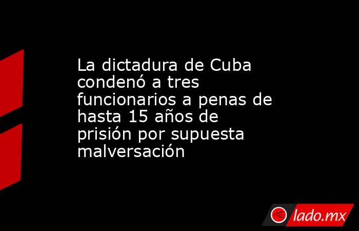 El Tribunal provincial de Santiago de Cuba (este) sancionó a tres funcionarios en cargos económicos de empresas estatales a penas de 10, 14 y 15 años de prisión, acusados de falsificación de documentos bancarios y de comercio para cometer malversación, informaron este domingo medios estatales.