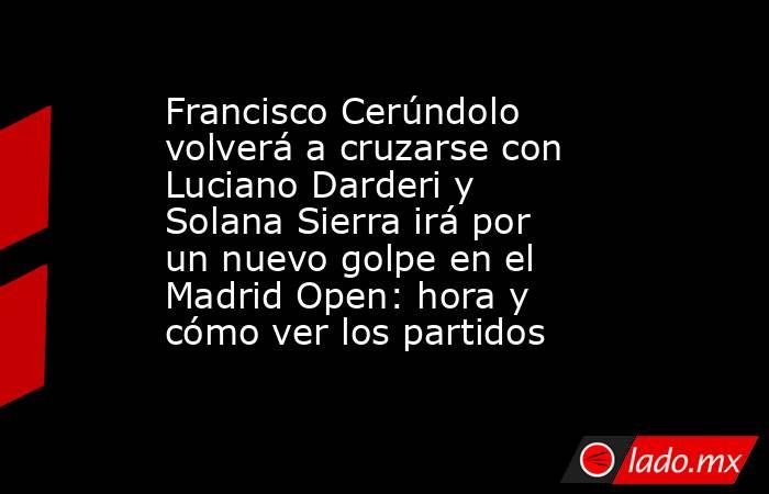 El Madrid Open sigue su marcha y tendrá presencia argentina tanto en el cuadro masculino como en el femenino. Por un lado, Francisco Cerúndolo afrontará un exigente cruce ante el ítalo-argentino Luciano Darderi por la tercera ronda, mientras que Solana Sierra buscará los cuartos de final frente a la experimentada checa Karolina Pliskova.