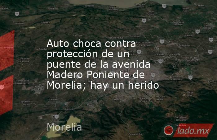 El cargo Auto choca contra protección de un puente de la avenida Madero Poniente de Morelia; hay un herido apareció primero en CB Televisión.