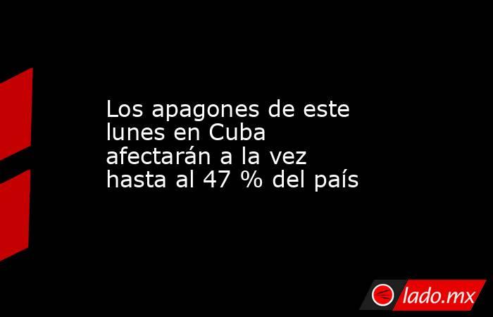 La Habana, 27 abr (EFE).- Cuba sufrirá este lunes prolongados apagones durante toda la jornada y el mayor corte del suministro, en el momento de máxima demanda, dejará sin corriente a un 47 % de la isla, según datos de la estatal Unión Eléctrica (UNE), elaborados por EFE.