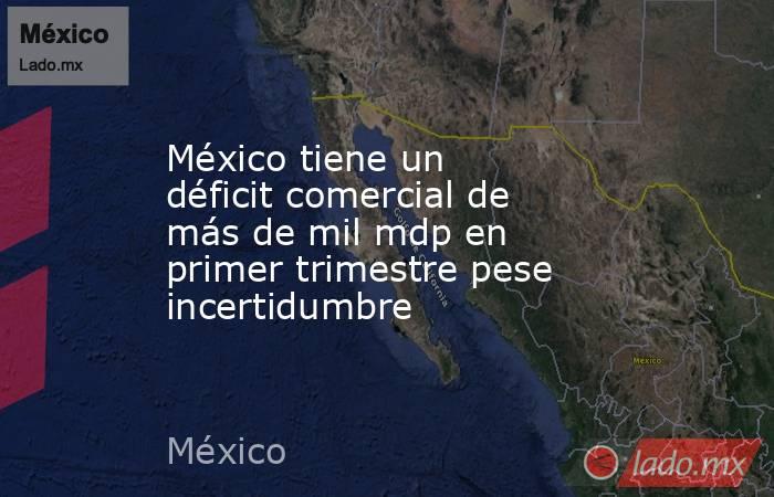 México tuvo en el primer trimestre del año un déficit comercial de mil 12 millones de dólares pese a un aumento del 17.9 por ciento en las exportaciones, informó el Instituto Nacional de Estadística y Geografía (Inegi), pese a la incertidumbre comercial de Estados Unidos.