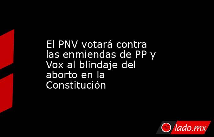 Madrid, 28 abr (EFE).- El PNV votará en contra de las enmiendas a la totalidad presentadas por PP y Vox al proyecto de ley del Gobierno para blindar y garantizar el derecho al aborto en la sanidad pública en la Constitución, según ha anunciado la portavoz del partido en el Congreso, Maribel Vaquero.