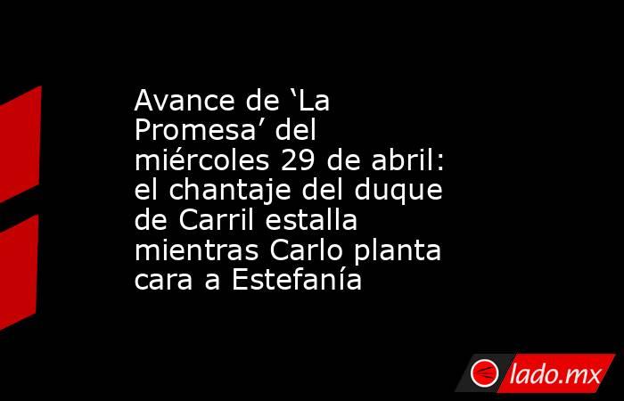 En el episodio del miércoles 29 de abril, las consecuencias de todo lo anterior empiezan a materializarse. Carlo decide finalmente plantar cara al chantaje de Estefanía, dispuesto a no ceder pese al riesgo de que su pasado salga a la luz, mientras Manuel comienza a sospechar que las intenciones del duque de Carril van mucho más allá de lo económico.