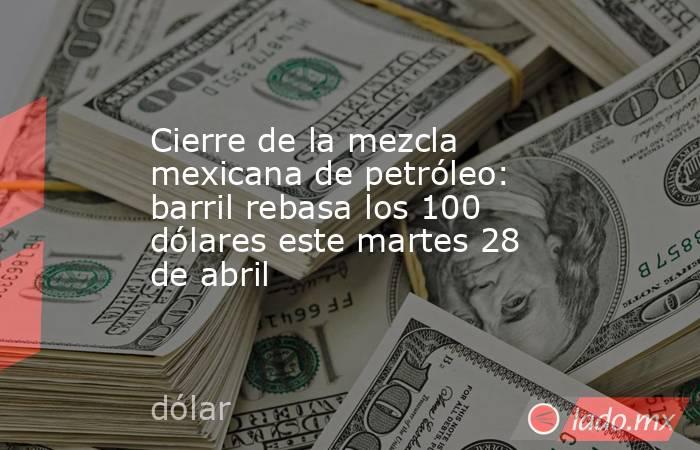 El precio de la mezcla mexicana de petróleo este martes 28 de abril fue de 101,8 dólares por barril, de acuerdo con los datos actualizados de Petróleos Mexicanos (Pemex) publicados cotidianamente en su página web oficial.