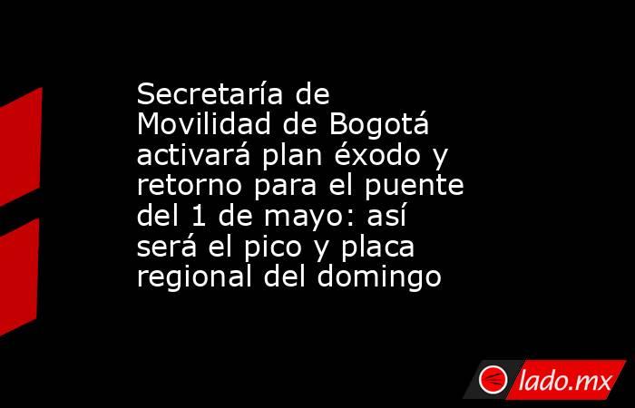 Con motivo del puente festivo del 1 de mayo, la Secretaría Distrital de Movilidad de Bogotá activará el Plan éxodo y Retorno, la estrategia integral que pretende facilitar la salida y el regreso de más de dos millones de viajeros que circularán por las principales vías de la ciudad.