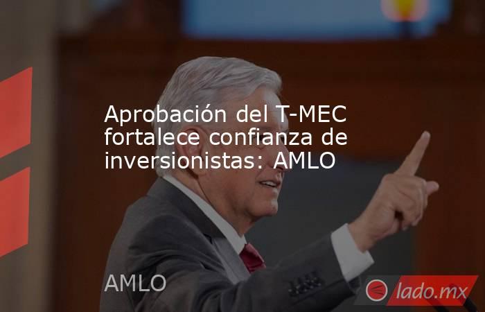 El presidente Andrés Manuel López Obrador afirmó que la ratificación del Tratado Comercial entre México, Estados Unidos y Canadá (T-MEC) ocurrido la víspera por parte del Senado, es una clara señal de que hay unidad en el país, y con ello se fortalece la confianza de los inversionistas en México.