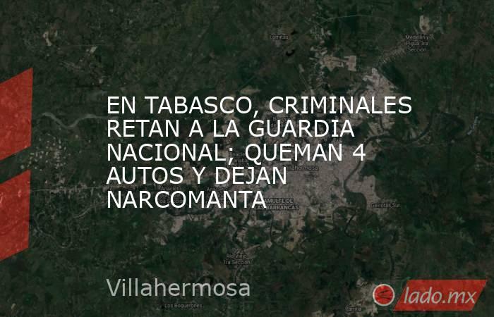 The post EN TABASCO, CRIMINALES RETAN A LA GUARDIA NACIONAL; QUEMAN 4 AUTOS Y DEJAN NARCOMANTA appeared first on Hola-Atizapán.