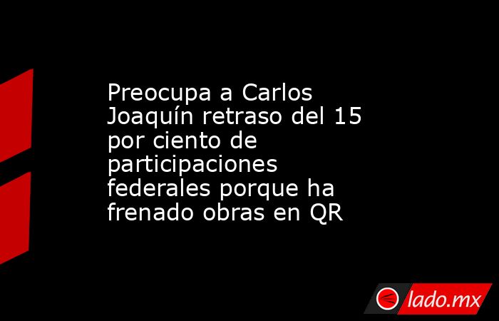 - Preocupa al gobierno de Quintana Roo el retraso de las participaciones federales, sobre todo porque esto ha causado atrasos en los convenios de obra y en participaciones donde se estima que es un 15%, informó el gobernador Carlos Joaquín González.