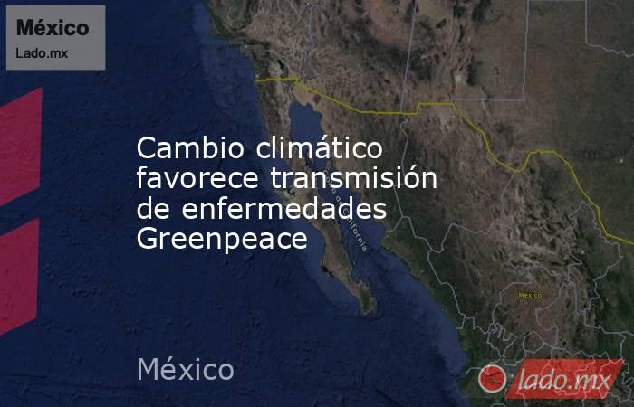 El cambio climático ha alterado de manera drástica la biodiversidad del planeta, lo que favorece la transmisión de enfermedades como dengue, paludismo, asma, tuberculosis, ébola, fiebre amarilla, cólera y diarrea, entre otras, alertó la organización ecologista Greenpeace México.