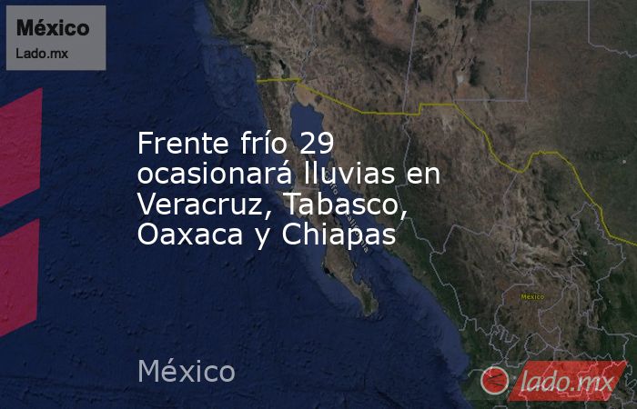 La Jornada El Frente Frío Número 29, que se desplazará por el noreste y el oriente de México, ocasionará este martes lluvias fuertes en zonas de Veracruz, Tabasco, Oaxaca y Chiapas; intervalos de chubascos en sitios de Puebla, Campeche y Yucatán, así como lluvias aisladas en Tamaulipas, Hidalgo, San Luis Potosí, Guerrero y Quintana Roo.