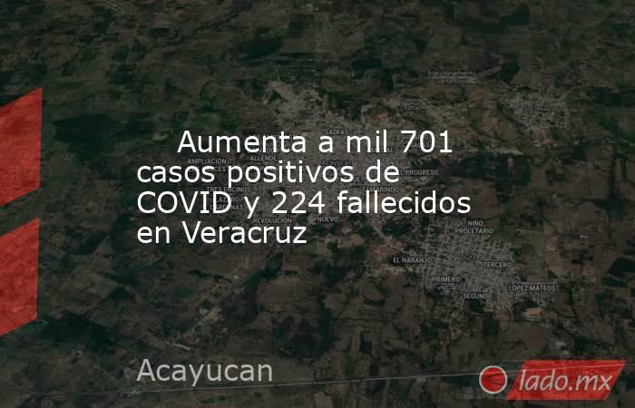 La Secretaría de Salud (SS) la noche de este viernes confirmó que el número de positivos de casos de COVID-19 aumento a mil 701 en 106 demarcaciones y 224 defunciones en 51 municipios del estado de Veracruz.