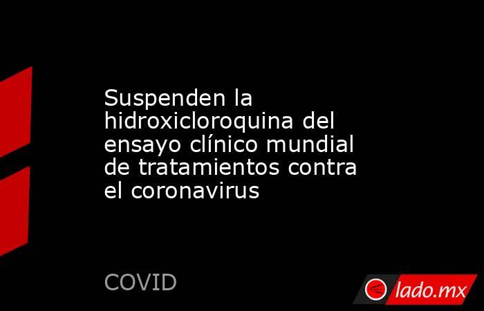 La Organización Mundial de la Salud informó este lunes que el grupo ejecutivo del “Ensayo de Solidaridad”, que busca tratamientos para el COVID-19, decidió suspender temporalmente los ensayos clínicos con hidroxicloroquina.