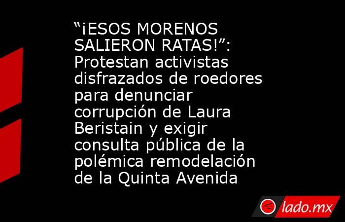 - Esta mañana, el activista Antonio Ramos Pérez y la asociación civil “Somos Tus Ojos Transparencia por Quintana Roo” se manifestaron disfrazados de ratas frente al Palacio municipal de Solidaridad para pedir transparencia de gastos y para denunciar las diversas irregularidades que se han registrado en la obra de remodelación de la Quinta Avenida y el Parque Fundadores.