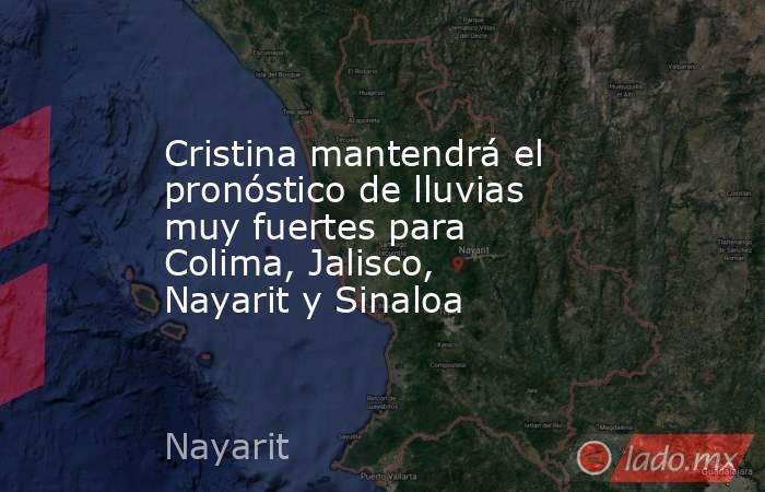 Sus bandas nubosas ocasionarán lluvias muy fuertes en … La entrada Cristina mantendrá el pronóstico de lluvias muy fuertes para Colima, Jalisco, Nayarit y Sinaloa aparece primero en CalleMexico.
