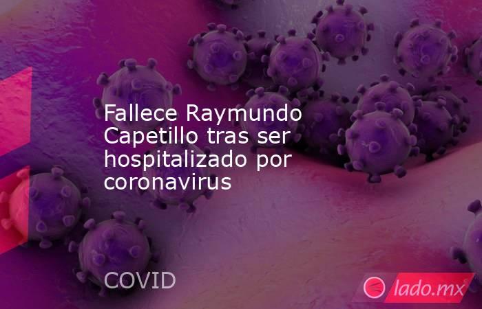 El actor Raymundo Capetillo murió tras ser hospitalizado debido al COVID-19, confirmaron familiares y amigos en redes sociales Redacción Murió el actor Raymundo Capetillo, quien permanecía hospitalizado debido al coronavirus.