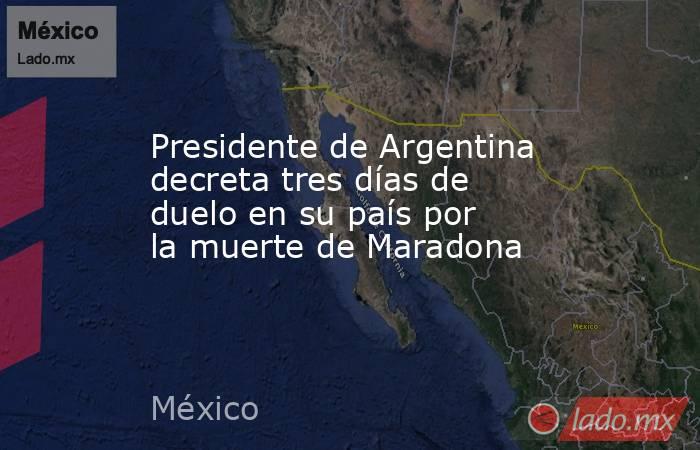 Presidente de Argentina decreta tres días de duelo en su país por la muerte de Maradona Sin Embargo