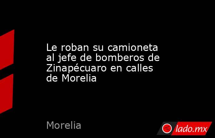 Le roban su camioneta al jefe de bomberos de Zinapécuaro en calles de Morelia Por: Oscar Pantoja El jefe de bomberos del municipio de Zinapécuaro fue víctima de los amantes de lo ajeno, al visitar la capital michoacana le robaron su camioneta.