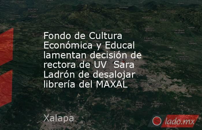 - El Fondo de Cultura Económica (FCE) y Educal lamentan profundamente la decisión adoptada por la doctora Sara Ladrón de Guevara, rectora de la Universidad Veracruzana (UV), en el sentido de desalojar nuestra librería del vestíbulo del Museo de Antropología de Xalapa.