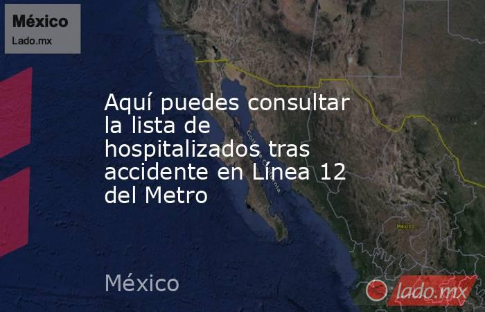 Aquí puedes consultar la lista de hospitalizados tras accidente en Línea 12 del Metro. Noticias en tiempo real 04 de Mayo, 2021 07:48