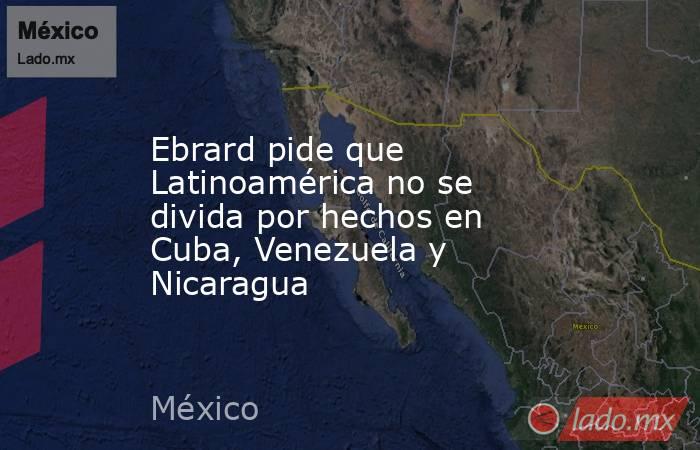 De cara a la cumbre regional que se celebrará en México este sábado, el secretario de Relaciones Exteriores (SRE), Marcelo Ebrard, hizo un llamado a todos los países de América Latina y el Caribe para que las distintas posiciones que … The post Ebrard pide que Latinoamérica no se divida por hechos en Cuba, Venezuela y Nicaragua appeared first on CalleMexico.