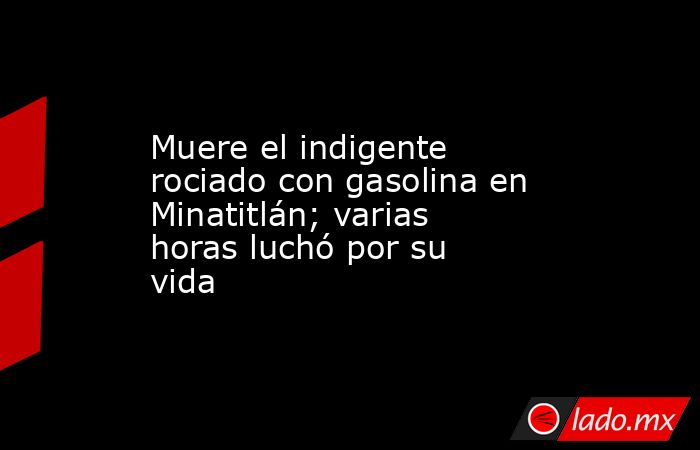 - Hace unas horas murió el hombre de la tercera edad indigente, que fue quemado con gasolina por un sujeto en Minatitlán la noche del Lunes.