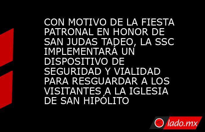 La Secretaría de Seguridad Ciudadana (SSC) de la Ciudad de México llevará a cabo un operativo de seguridad y vialidad en las inmediaciones del templo de San Hipólito y San Casiano, debido a la celebración de la fiesta patronal en honor a San Judas Tadeo.
