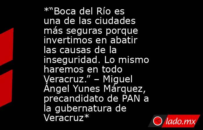 *“Boca del Río es una de las ciudades más seguras porque invertimos en abatir las causas de la inseguridad. Lo mismo haremos en todo Veracruz.” – Miguel Ángel Yunes Márquez, precandidato de PAN a la gubernatura de Veracruz* Agn Veracruz